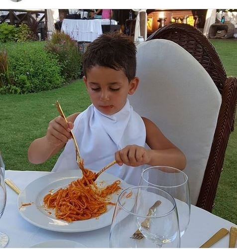 ونشرت صورته يتناول الباستا وعلقت عليها: "كونه عصبي شوي ما بيعني إنّه مو مرتّب بل بالعكس، يمكن بيعصّب لأنّه مرتّب أكتر من اللزوم".