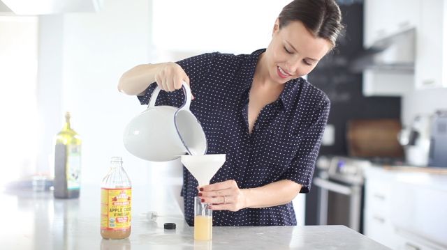 - ضعي 10 سنتل من خلّ التفاح في وعاء صغير يحتوي على الماء المغلي. أتركي المزيج يبرد ثمّ بللي به كمادة طبية وضعيها على جبينك وصدغيك لمدة 20 دقيقة.