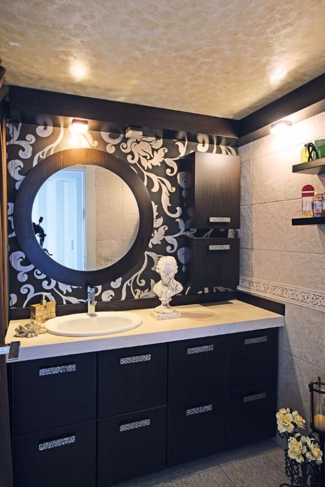 في الجهة المقابلة، أحدثت المهندسة برمكي تجويفة بارزة في الوسط ضمّنتها مرآة تحاكي الطراز التركي الأصيل.