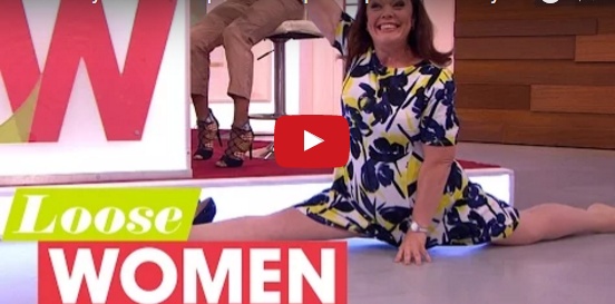 أبهرت الممثلة ومقدمة البرامج البريطانية ليزا رايلي مشاهدي برنامج loose women بعدما قامت بحركات رياضية خطيرة على الهواء مباشرة، على رغم سنها.