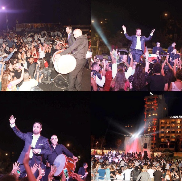 وشارك الفنّان اللبناني شريطاً مصوراً بعدسة معجبيه، يلحظ صعود الشابة إلى مسرح فندق "ريفييرا" على كرسيها المدولب لتحية عاصي الذي بادر إلى تقبيل يدها.