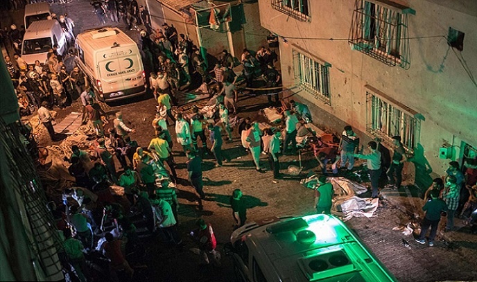 إنتشر مقطع فيديو يرصد اللحظات التي أقبل فيها ذوو ضحايا الهجوم الانتحاري الذي نفذه طفل ينتمي الى تنظيم "داعش" الارهابي، في حفل زفاف كردي بمدينة غازي عنتاب، ما أدى إلى مقتل أكثر من 50 شخصاً وإصابة نحو 100 آخرين.