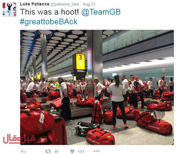 عاد منتخب بريطانيا العظمى الى وطنه، بعد احراز 67 ميدالية في الالعاب الاولمبية في ريو، اضافةً الى 900 شنطة حمراء متطابقة.