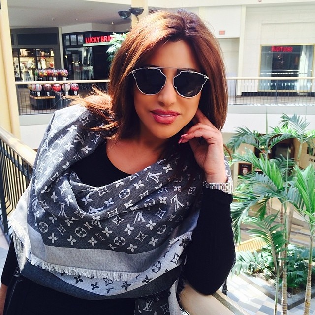 عكست نجوى بأوشحتها ألوان حقائبها كاللون البرتقالي الذي أضافت به طابعاً مرحاً على أناقتها.