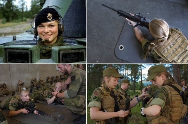 في تقرير أعدته القناة، وتناقلته عنها الوكالات ملخصاً ومترجماً، أن المتطوعات ومعظمهن ذوات شعر أشقر لعيون زرقاء وخضراء، يلعبن دوراً مهماً في القوات المسلحة النرويجية "منذ بدأ قبول تطوع الجنسين في 1980 بالجيش. كما أن 4 من 5 وزراء دفاع نرويجيين كن من النساء"، وفق قولها عن النرويجيات اللواتي يمثلن 9% فقط من عدد الجنود، متطوعين ومنخرطين "والهدف هو الوصول بعددهن في 2020 ليصل إلى 20% من عدد الجنود" بحسب الوارد بتقريرها.