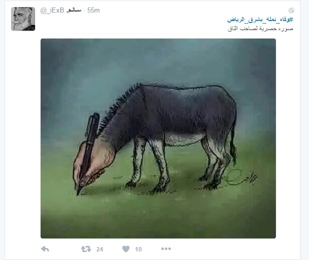 أثار وسم (هاشتاغ) "وفاه نمله بشرق الرياض" جدلاً واسعاً عبر موقع التواصل الاجتماعي "تويتر"، وغضباً عارماً من مطلقه، دفع المغردين إلى "البحث عن لقتله وضربه"!