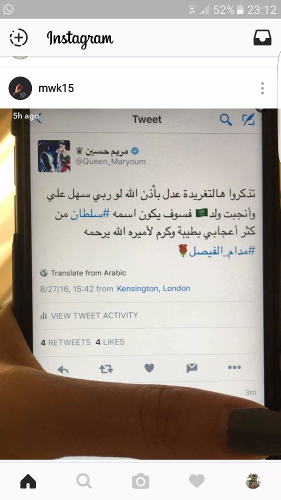 مريم وعبر حسابها على التويتر كتبت: "تذكروا هالتغريدة عدل باْذن الله لو ربي سهل علي وأنجبت ولد، فسوف يكون اسمه سلطان من كثر أعجابي بطيبة وكرم لأميره الله يرحمه"، (تيمّناً بإسم الأمير سلطان الراحل)، وأرفقت التغريدة التي أثارت الجدل بين السعوديين بهاشتاغ "#مدام_الفيصل".