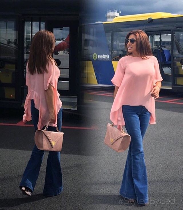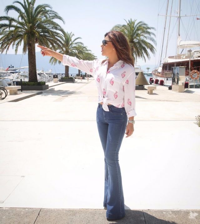 تألقت الفنانة نجوى كرم في العديد من إطلالاتها اليومية والكاجويل بسروال الدنيم أو الجينز بالأرجل الواسعة المعروف بالـ Flared Pants. يتميز هذا السروال بخصره العالي وقصته الواسعة عند الأرجل وبقدرته على إظهارك أطول بالتركيز على طول الرجلين باعتماد الخصر العالي، فكلما برز طول الأرجل كلما ستبدين أطول. لذا إذا كنت تريدين الظهور برشاقة وطول أكثر اختاري السروال بالأرجل الواسعة ونسقيه مع توب بسيطة من القطن أو أخرى من الخامات المتهدلة كالحرير أو نسقيه مع قميص مميز وأضيفي عليه لمسة مميزة بربطه من الأمام إسوةً بنجوى كرم.