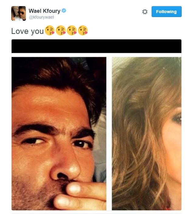 أثار النجم اللبناني وائل كفوري الجدل يوم أمس عبر موقع التويتر، عقب نشره صورةً له ولإمرأة بـ"نصف وجه"، وقد علّق عليها بعبارة Love You أي "أحبّك"، وقد إنهالت عليه التعليقات في محاولةٍ لكشف هوية السيدة الموجودة في الصورة.