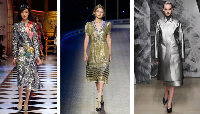شهدت منصات عروض أزياء خريف وشتاء 2016-2017، بريقاً عكسته الأزياء اللماعة بالألوان الذهبية الفضية والنحاسية، فطغت على فساتين هذا الموسم وسراويله وتنانيره.