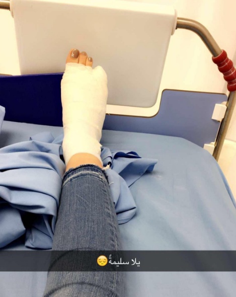 وشاركت قيشاوي جمهورها عبر شبكات التواصل الاجتماعي صورة من داخل المستشفى لرجلها اليمنى المكسورة والموضوعة في جبيرة.