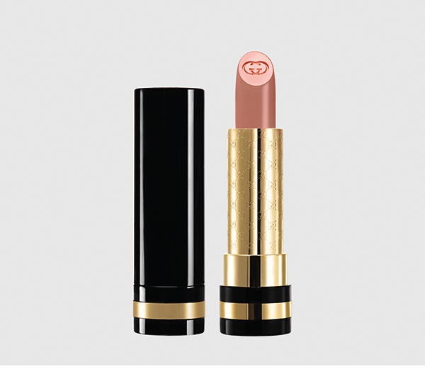 حدّدي شفتيك بقلم حيادي اللون Chanel Le Crayon Levres Precision Lip Definer in Natural no.34، وغلّفيهما بأحمر شفاه بلون البيج الأنيق Gucci Luxurious Moisture-Rich Lipstick in Carnation no.305.