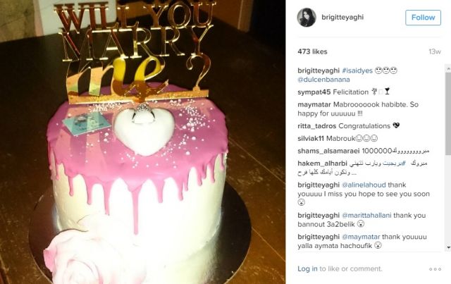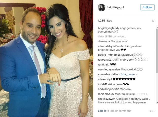 وأعلنت بريجيت خبر خطوبتها من رامي، وعلّقت على الصورة وكتبت: "خطوبتي.. كل شيء بالنسبة لي".