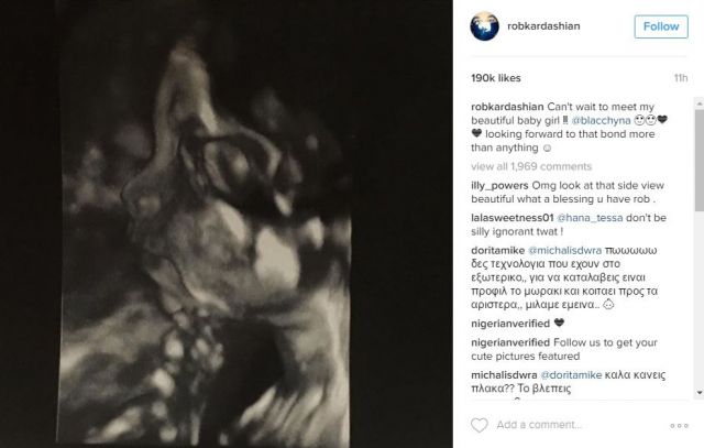 ونشر كارداشيان، صورة الـ Echo،عبر حسابه الرسمي على تطبيق "انستغرام" وعلّق عليها وكتب: "لا أستطيع الانتظار حتّى رؤية طفلتي الجميلة الصغيرة".