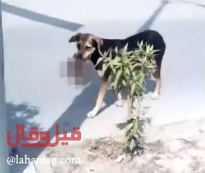 فيديو صادم يشعل مواقع التواصل.. كلبٌ يتجوّل وجثّة طفلٍ في فمه!!