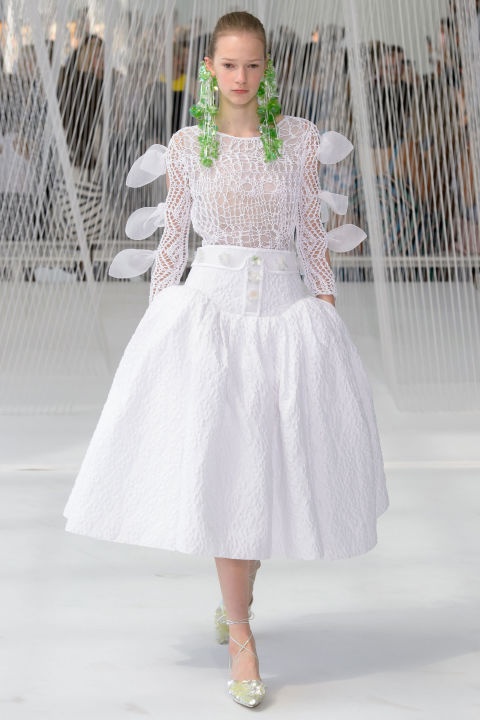 ألوانٌ صارخة وقوية كالأخضر والبرتقالي والأصفر اجتمعت كلها في إطلالاتٍ واحدة، فظهرت التنانير القصيرة بنقشات المربعات الملونة على شكل منحوتة هندسية، والسراويل الواسعة من خامات الأورغانزا بالتقليمات العريضة. لم تقتصر الغرابة على أزياء عرض Delpozo بل طالت الإكسسوار فظهرت الأقراط الضخمة الأشبه بالكريستال.