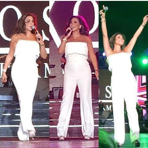 لطالما تميزت الفنانة إليسا بأناقة إطلالاتها التي كان آخرها إطلالة باللون الأبيض اعتمدتها أثناء إحيائها لحفلها في شرم الشيخ فتألفت بالرداء السروالي باللون الأبيض. أسلوبٌ بسيط كاجويل وعصري تألقت به إليسا لكنه خانها فأبرز زيادة وزنها. فقصة الجامبسوت عند البطن أضافت حجماً لها وبرزت الوزن الزائد عند هذه المنطقة بالتحديد، رغم جمالية اللون الأبيض وإبرازه لسحنتها الجميلة.