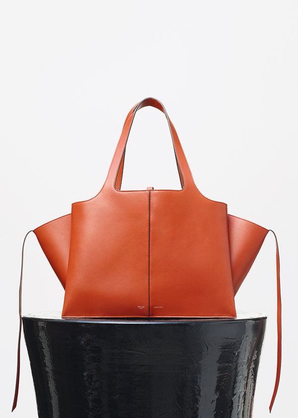 عند مقارنة حقيبة Tri-fold مع أسلافها، أي Trotteur و Trapeze و Luggage، لا نجد أي فارق في النوعية. تم وضع الشعار الذهبي على القاعدة لتأكيد البساطة الكلاسيكية التي تشتهر بها Celine. كما أن جلد العجل الطري يجعلها حقيبة مرغوبة من كل امرأة.