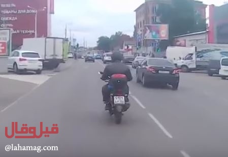 نشرت صحيفة "ديلي ميل" البريطانية مقطع فيديو للحظة وقوع الحادث في مدينة كراسنودار الروسية، وأظهرت اللقطات التي رصدتها كاميرا لوحة قيادة الرجل وهو يعبر الطريق باندفاع دون أن ينظر للطريق مما أدى لاصطدام الدراجة النارية به وإسقاط صاحبها أيضا الذي أصيب في ساقه.