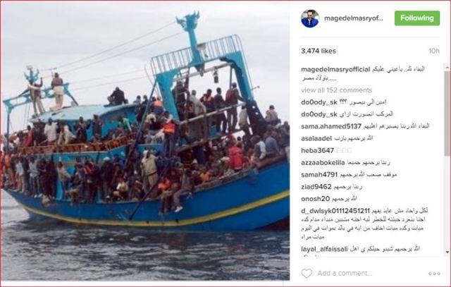 ماجد نشر صورة للمركب عبر حسابه على إنستغرام، وعلق قائلًا: "البقاء لله.. ياعيني عليكم يا ولاد مصر".