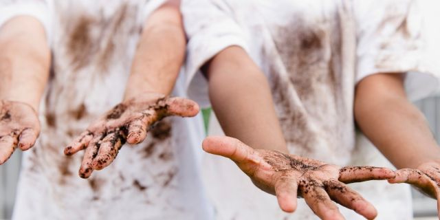 يميل الأطفل عادة إلى اللعب بأقلامهم أياً يكن نوعها ويرسمون بعض الخطوط على ملابسهم. كما أنّهم لا يتردّدون في الاستلقاء على العشب وفي استخدام تلك الملابس من أجل تنظيف آثار الفواكه الحمراء التي يتناولونها. وفي هذه الحالات، ليس عليك أن تقلقي، بل من المفيد أن تقومي بهذه الخطوة: