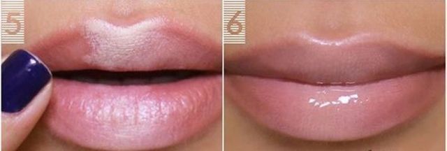 3 دعي اللون الأبيض يغطّي كامل المساحة المستهدفة، من حدود شفتيك إلى قلبهما.