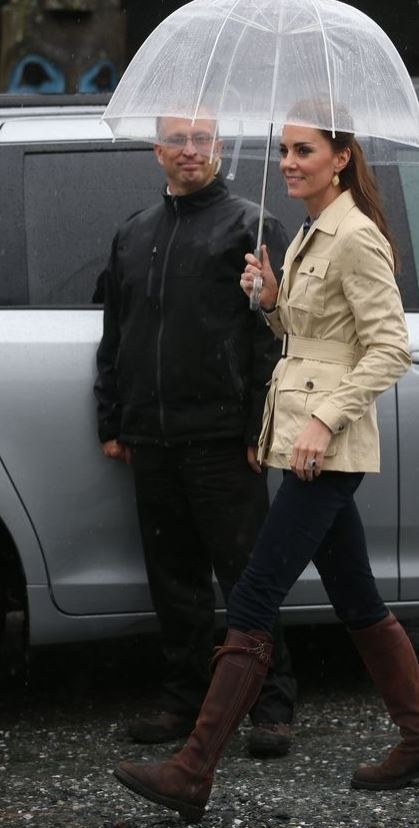 ظهرت الدوقة في إطلالتها الاخيرة خلال جولتها مع زوجها الأمير وليام في كندا بملابس عملية عبارة عن بنطال ضيق من الجينز وقميص كحلي ونسقت معهما معطف سفاري باللون البيج، ولفتت الانظار بالجزمة العالية العنق والتي تمتلكها منذ نحو 12 عاماً.