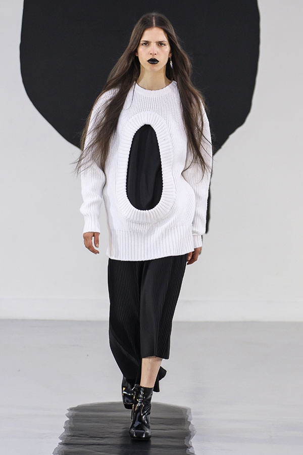 في عرض Aalto، قدّم لنا توماس ميريكوسكي Tuomas Merikoski التناقضات الجلية بحيث ترافقت الشفاه الزرقاء مع البذلات المطبّعة بالمربعات، والأصفر الخردلي ضمن أسلوب رجالي قديم الطراز. أما الشعر الطويل المتطاير فأضاف المزيد من الأنوثة.