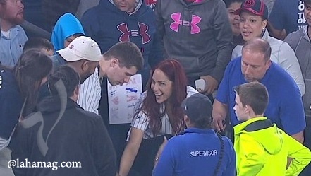 نشرت صحيفة "ديلي ميل" البريطانية مجموعة من الصور، ويظهر فيها الشاب اندرو فوكس البالغ من العمر 29 عاماً وهو يتعرض لموقف محرج أثناء طلبه الزواج من حبيبته هيذر تيرويلغر وسط مباراة لفريق "يانكي" الأمريركي للبيسبول، فبعدما هبط على ركبته ليطلب يدها سقط الخاتم من يده وفقد على المدرجات وبين الجمهور.