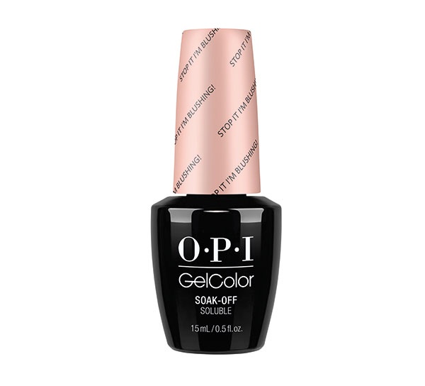 اطلي أظافرك باللون الوردي الشفاف Guerlain La Petite Robe Noire Deliciously Shiny Nail Colour in Pink Ballerinas no.061 ، وغلّفي اللون بطبقة من الطلاء الهلامي الوردي O.P.I Soft Shades in Stop It I'm Blushing Gel.
