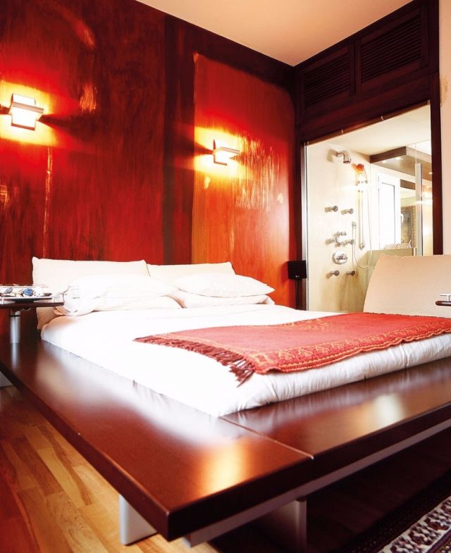 جناح غرف النوم يذكّر بتصميم الفنادق، فالفخامة والراحة والعملية حاضرة بكلّ مقوّماتها. غرفة الماستر سريرها وجدرانها من الخشب، وقد أضاء ظهر السرير الخشب على طول الجدار مصباحان يميناً ويساراً. وبين الغرفة وحمّامها، يفصل جدار من الزجاج.