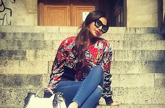 إرتدت وهبي في الصور ملابس شتوية، عبارة عن كنزة سوداء اللون مع خطوط حمراء، وبنطلون أسود، وأكملت اطلالتها بحذاء وطلاء أظافر أحمر.