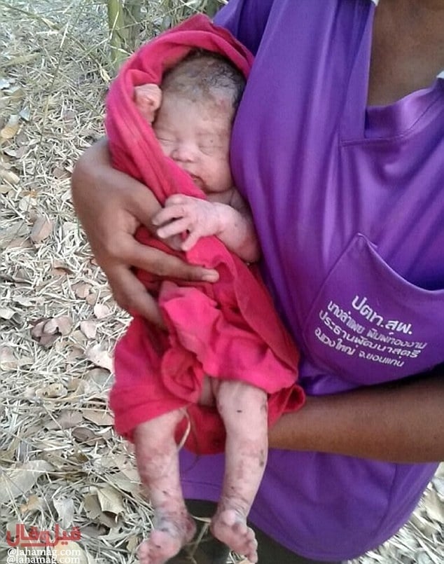 نجا رضيع في تايلاند من الموت بأعجوبة بعدما طُعن 14 مرّة ودُفن حياً تحت شجرة، بعد أيام فقط على ولادته.
