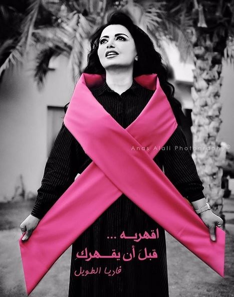 نشرت الاعلامية المميزة صورتها وهي ترتدي الاسود وتلف عليها الشعار الزهري، وعلق قائلة: "تفائلي دائماً.. واستقبلي أملاً وردياً مفعماً بنكهة الحياة".