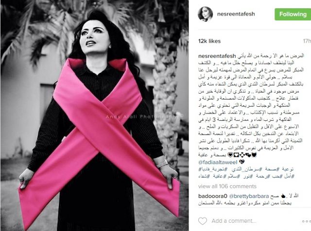 بالصور - نسرين طافش في رسالة انسانية ضد سرطان الثدي