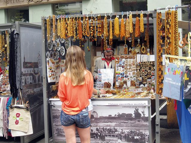 فيما شارع بيليس واحد من أفضل الشوارع لشراء الهدايا، بما في ذلك الحِرف الخشبية، ومجوهرات العنبر التي تشتهر بها ليتوانيا، والكتان، والسيراميك. يمكنك أيضًا تصفّح العديد من الأكشاك المنتشرة على طول بيليس، حيث تجدين قطع العنبر الخام وأكسسوارت اليد المحبوكة والجوارب الصوفية، واللوحات.