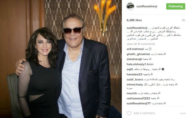 وشاركت الفنّانة السورية عبر حساباتها على شبكات التواصل الاجتماعي صورةً جمعتها بالفنّان المصري، معلقةً: "بيلبقلك الفرح والقوة والعنفوان .... ومابيلبقلك المرض ... ورح تتغلب عليه باذن الله .... سلامتك يا كبير ... ياغالي على قلبي وعلى قلوب الملايين الملايين محمود عبد العزيز".
