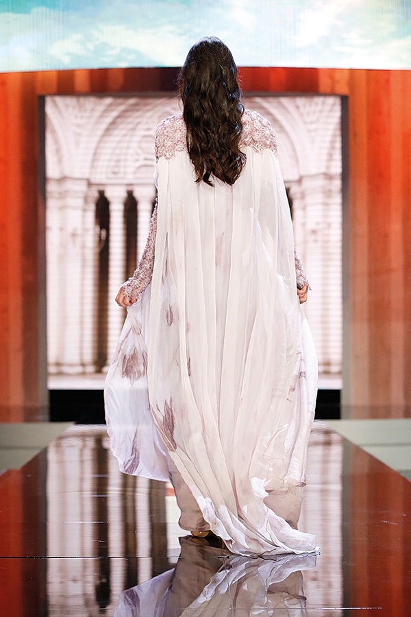 كما أطلعنا مارون على رأيه بأن العباءة الشرقية هي التي تتمتع بقصة فضفاضة، وقد كان رافضاً لفكرة تحديد خصرها، ورغم خسارته في هذا التحدي، إلا أنه ظل فخوراً بتصميمه، إذ أنّ المرأة شرقية في نظر مارون، بثوبها الزهري الناعم والفضفاض والـ Turban الملتف حول رأسها، فلم يحالفه الحظ في ذلك، وكان الأضعف بين تصاميم زملائه ليُغادر المنافسة في سادس حلقات البرنامج.