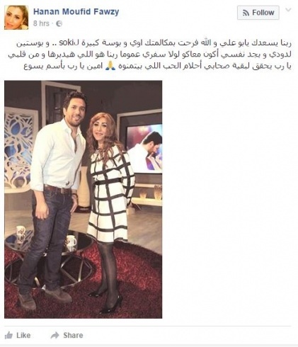 وما زاد من تأكيد الشائعة، هو نشر الاعلاميّة حنين فوزي لصورتها برفقة حسن، حيث كتبت: "ربنا يسعدك يابو علي والله فرحت بمكالمتك اوي وبوسة كبيرة لsoki .. وبوستين لدودي وبجد نفسي أكون معاكو لولا سفري عموما ربنا هو اللي هيدبرها ومن قلبي يا رب يحقق لبقية صحابي أحلام الحب اللي بيتمنوه".