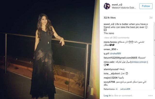 نشرت الفنانة السعودية أسيل عمران، عبر حسابها الرسمي على تطبيق "انستغرام" صورتين لها بفستانٍ أسود شفّاف طويل، ما أثار فضول وانتقادات الروّاد في محاولة للمسّ بها.