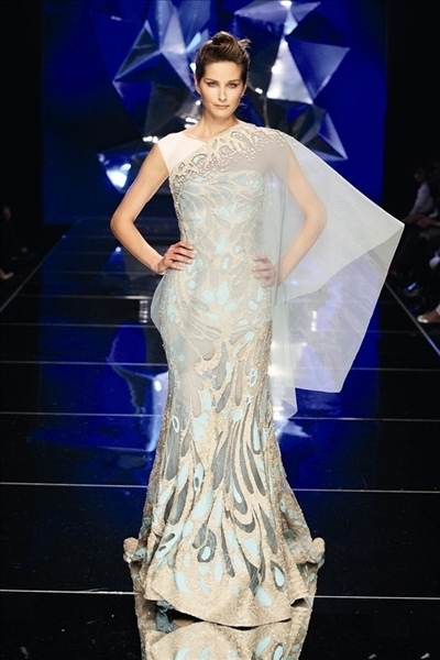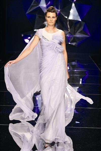 لورنزو ريفا تخيّل حوريّات وآلهات من البحار، وسط ورود يفوح عطرها، تمثّلها بالنسبة اليه النجمة أنجلينا جولي التي يعتبرها مزيجاً رائعاً بين الجمال الكلاسيكيّ والجمال العصريّ. لورنزو ريفا استعان بالطبيعة، وللسهرة، أتت تصاميمه خفيفة مثل نسمة الهواء. وقد أراد ريفا أن تكون المرأة هذا الموسم جذّابة ولكن دون أن تخيف الرجل. وقدّم ألوان العاجيّ والأخضر والرماديّ والليلكيّ والزهريّ، بالإضافة إلى أقمشة مطبّعة بالزهور وتطريز على اليد.