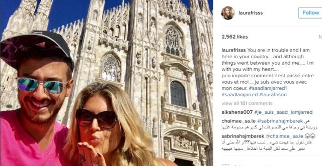 أكدت الإيطالية لورا فريسون حبيبة النجم المغربي سعد لمجرد السابقة أنها إلى جانبه دائماً، بعدما القي القبض عليه في فرنسيا بتهمة الإغتصاب.