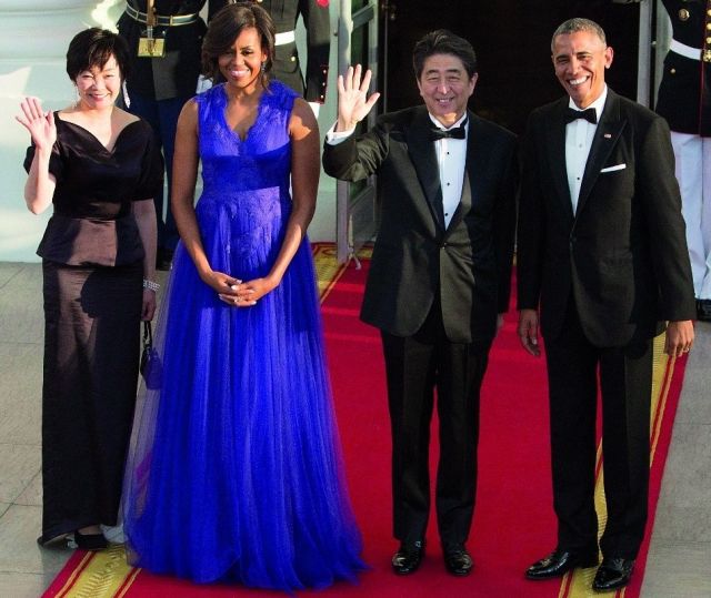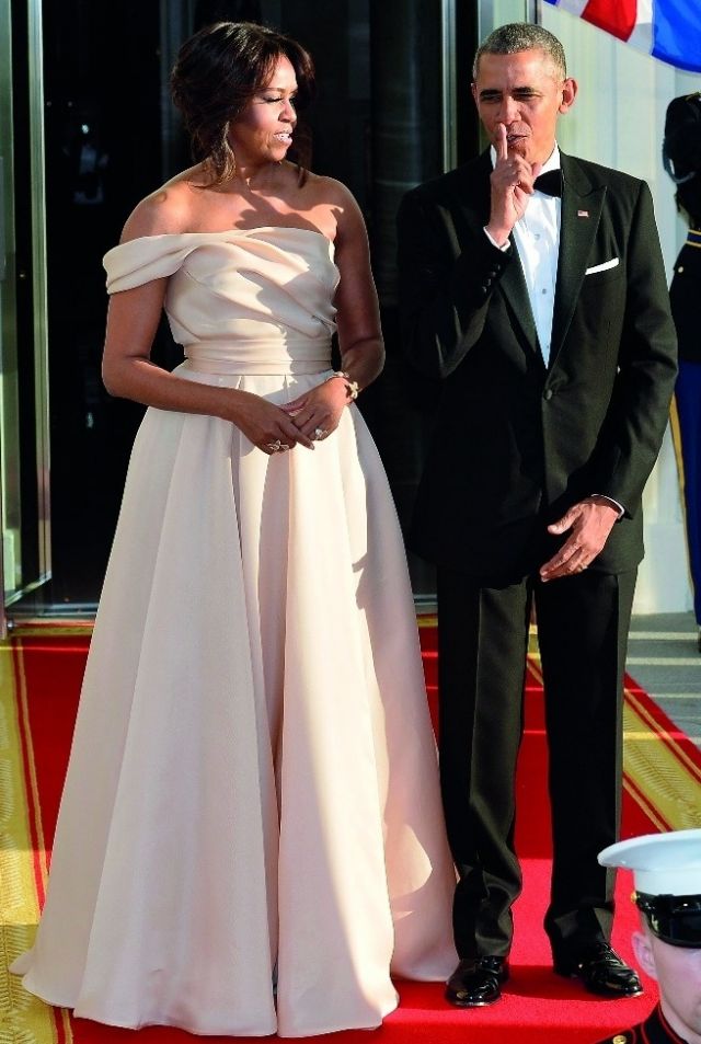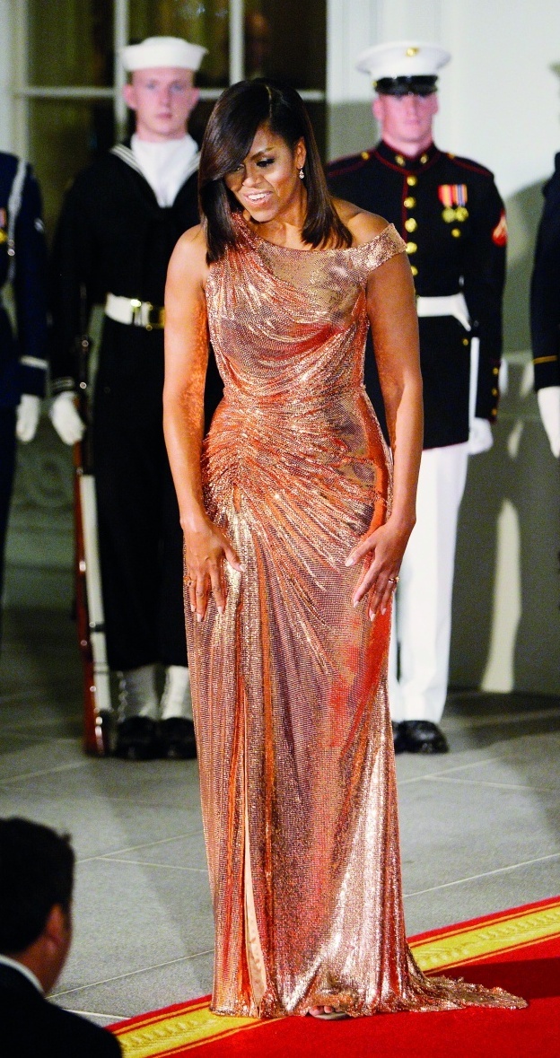 في سياق آخر، شاركت السيدة أوباما في آخر عشاء رسمي لها بصفتها سيدة أولى للولايات المتحدة. أقيم العشاء في العاصمة واشنطن على شرف رئيس الوزراء الإيطالي ماتيو رينزي وزوجته أنييس لانديني، وتألقت ميشيل أوباما خلاله في فستان صممته خصيصاً لها دوناتيلا فيرساتشي. الفستان ضيق وطويل، بلون الذهب الوردي، مع ثنيات دقيقة وياقة غير متماثلة. وقد عبّرت دوناتيلا فيرساتشي عن سعادتها لتصميمها فستان السيدة الأولى، وشكرتها على كل ما فعلته لأميركا وبقية العالم.