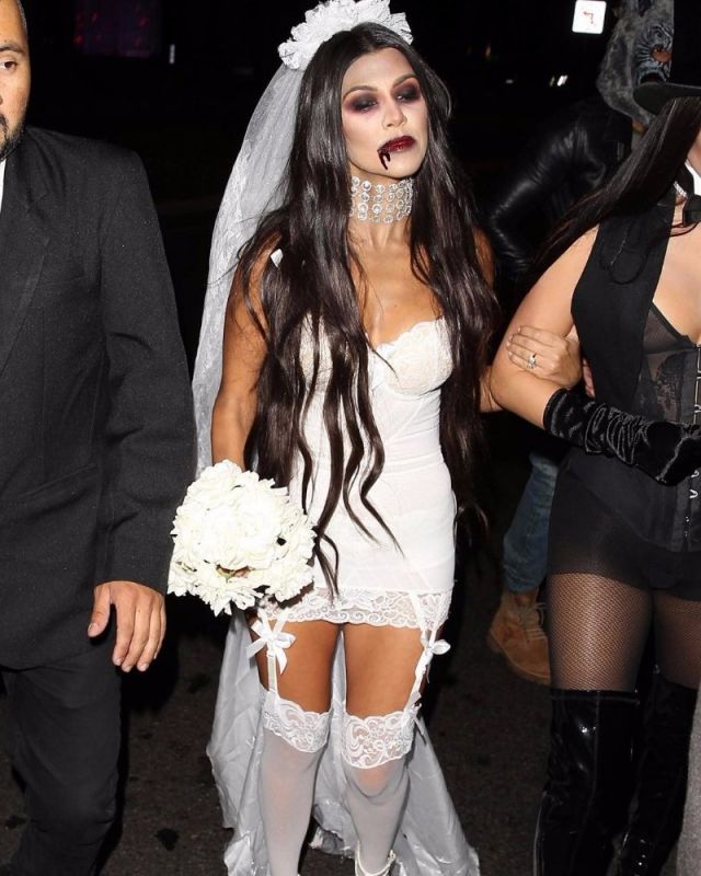 اختارت كورتني كارداشيان زيّ العروس الزومبي وظهرت شقيقتها كايلي جينر على شكل هيكل عظميّ. وعكست إطلالة عارضة الأزياء سيندي كروفورد وابنتها كايا أجواءً من الديسكو.