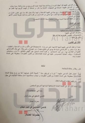 بعد التحقيقات، نشر موقع "التحري" اللبناني، الحكم الذي أصدرته قاضي التحقيق في جبل لبنان سمرندا نصّار، والذي يقول: