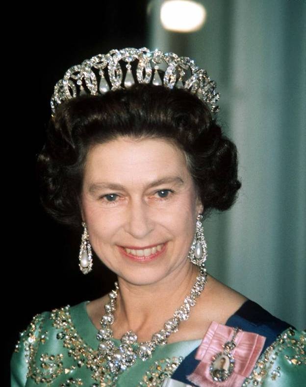 هي هدية قدّمها والدا الملكة إليزابيث لها لمناسبة زواجها وهي مصنوعة من الذهب والفضة ومرصعة بالروبي والماس. ولطالما تزيّنت بها الملكة في أيام شبابها.