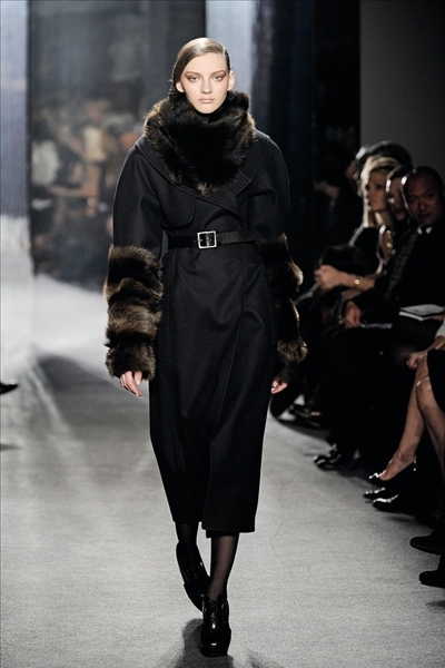 عرض Donna Karan كان جميلاً جدّاً ومنظّماً للغاية، ميّزته الموسيقى، فكان لاعب البيانو Eric Lewis يعزف خلال العرض مع صورته معكوسة على جدران الصالة. موسيقاه تماشت مع التصاميم التي تريدها كارن أن تلمس قلوب النساء وتمنحها القوّة والثقة بالنفس. كما أرادت دونا كارن أن تعيد حبّها إلى مانهاتن، قلب نيويورك! وقد قالت في الكواليس إنّ كلّ إمرأة في حاجة إلى قطعتين في خزانتها هذا الشتاء، تأخذانها من النهار إلى الليل، مثل التصاميم الضيّقة والطويلة التي قدّمتها بأكمام هندسيّة محدّدة عند الخصر.