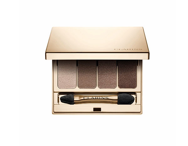 ● لتجميل عينيك، استعملي علبة ظلال الجفون الرباعية الألوانClarins 4 Colour Eyeshadow Palette in Brown no.03، وزّعي الظل العاجي فوق كامل الجفن الأعلى، والظل البني-النحاسي عند زاوية العين الخارجية، وموّهي اللون نحو الداخل. بعدها، ضعي لمسة من الظل البني الدافئ عند طيّة العين وخط الرموش السفلية. لإشراق النظرة، ضعي لمسة من الظل الماسيّ M.A.C Transformed Small Eye Shadow in White Frost عند زاوية العين الداخلية.