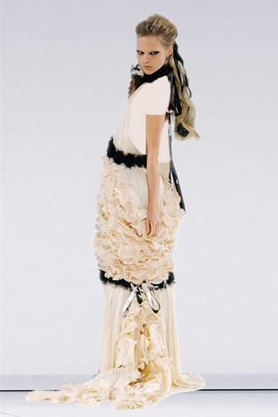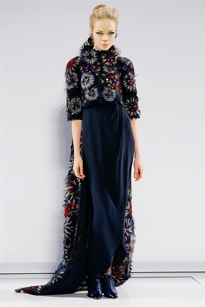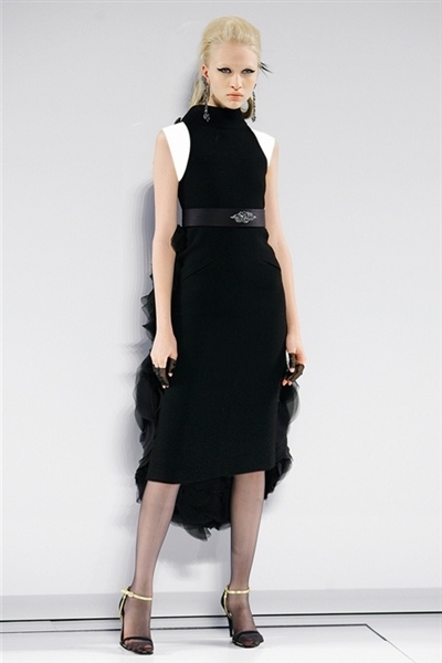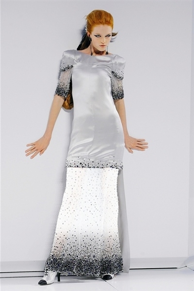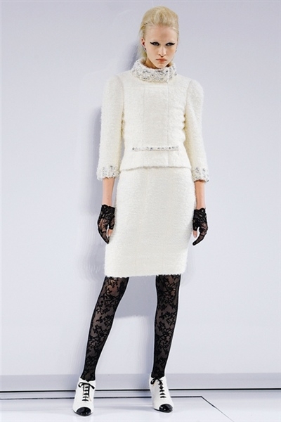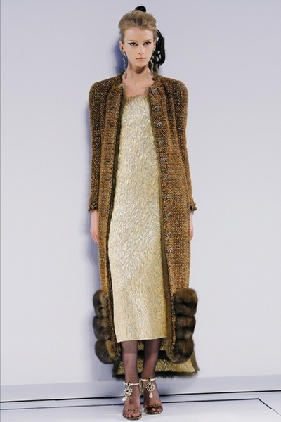 برزت بعض التفاصيل الساحرة والمميزة مثل حواشي التويد البارزة لإظهار وميض من نقش مطبع على فرو حيوان الأسلوت أو فستان سهرة ضيق مع حاشية خلفية مبطنة بالأحمر. ثمة معطف فروسية منخفض عند الظهر ومنحنٍ إلى الأعلى في الأمام أمام كشكشة قميص بيضاء. وحين ظهر ثنائي شاب في ثوب الزفاف الأبيض من قارورة عطر عملاقة من شانيل Chanel، انتهى العرض الأنيق للأزياء الراقية.