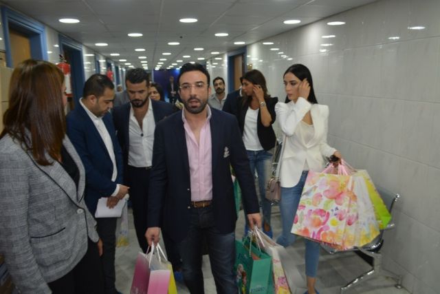 وقام الدكتور البياع باصطحاب الفنانين بجولة داخل المستشفى لزيارة الأطفال المرضى وتوزيع الهدايا عليهم.